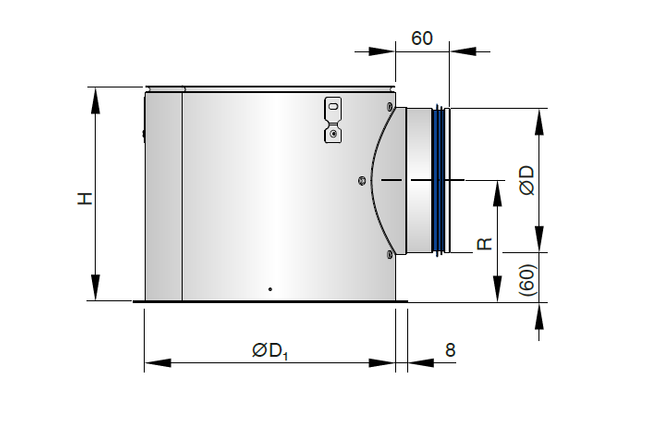• Spigot suitable for circular ducts to EN 1506 or EN 13180