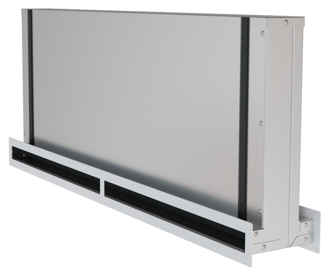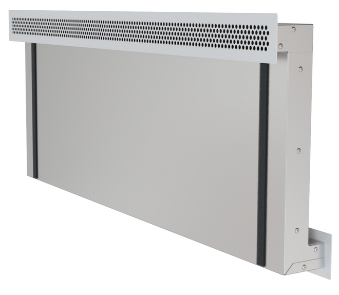 Type CFE crossflow elements can be installed in lightweight partition walls. Due to the pressure difference, the air flows e.g. from the office area as exhaust air into the hallway, into indoor zones or neighbouring areas with suspended ceilings. A central exhaust air system can be used there. Integrated acoustic lining reduces noise transmission into adjacent rooms. To avoid sound transmission on lightweight walls, insulation strips are attached to the casing for sound decoupling.