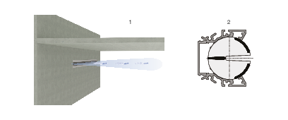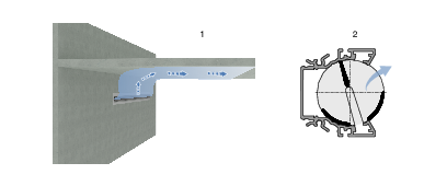 Damper blades (optional) in the spigot enable the volume flow rate to be balanced during commissioning. The damper blade is adjusted via cable pulls and can also be adjusted when the diffuser face is mounted.
