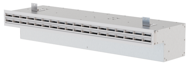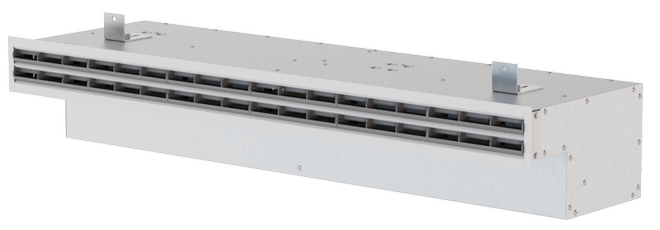 The wall diffusers can be combined with PURELINE 18, PURELINE35 or PURELINE50 range front rails. These have factory-set air control blades that can be manually adjusted on site. The airflow direction can be adjusted to meet various local requirements.