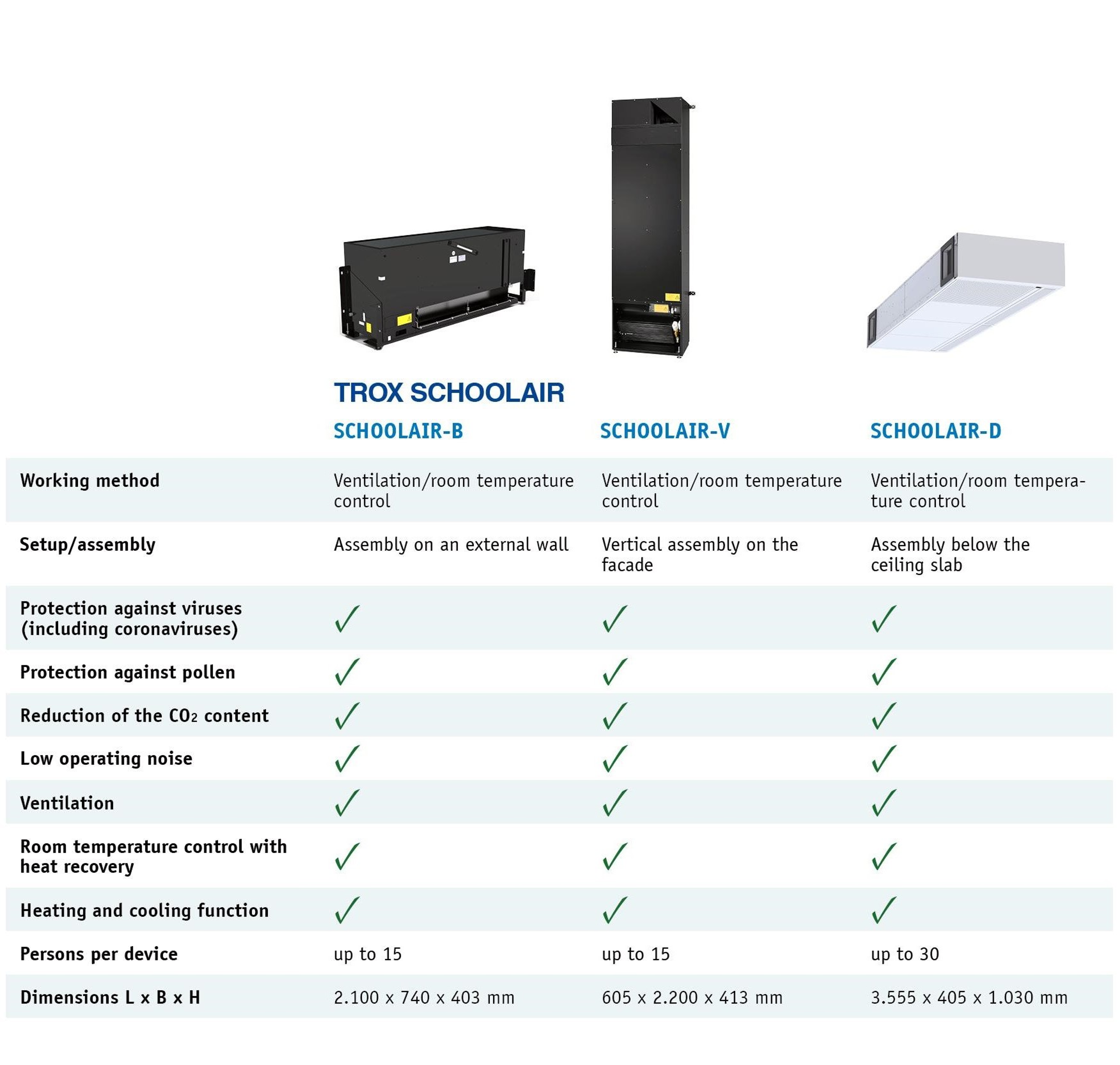 A regular supply of fresh air is the surest way to prevent the spread of viruses in indoor air. Opening windows is only suitable for everyday use to a limited extent. TROX X-CUBE SCHOOLAIR ensures permanent air change even with closed windows and therefore effective virus protection – also against the coronavirus, including all known mutations.