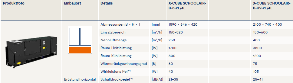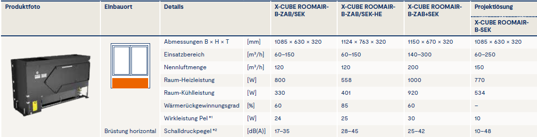 Unsere Werte beruhen auf: *¹ Angabe bei Nennluftmenge   *² Raumdämpfung: 8 dB(A)   *³ max. Leistung Elektro-Nachheizregister