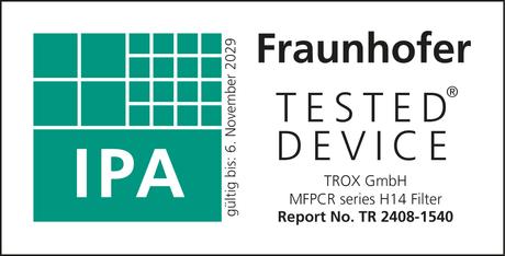 Das Fraunhofer Institut hat das Ausgasgungsverhalten des TROX Filters nach ISO 14644-5 untersucht: TROX kann nun als erstes Unternehmen das entsprechende, unabhängige Zertifikat vorweisen: