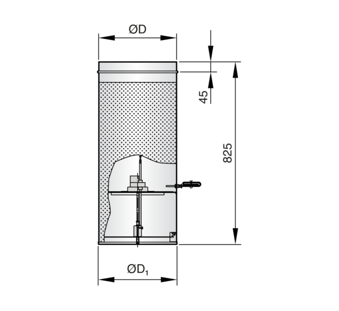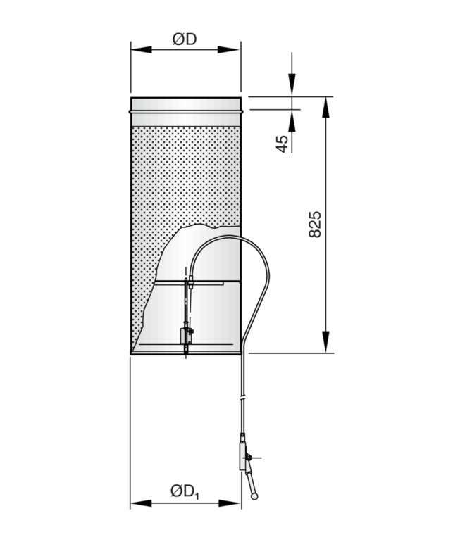 Ready-to-install component which consists of a cylindrical, perforated metal casing, air control disc and top entry spigot.