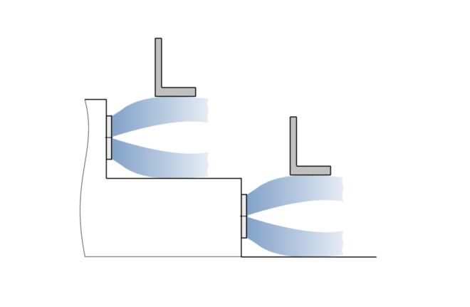 • Air discharge either parallel to the installation surface or angled