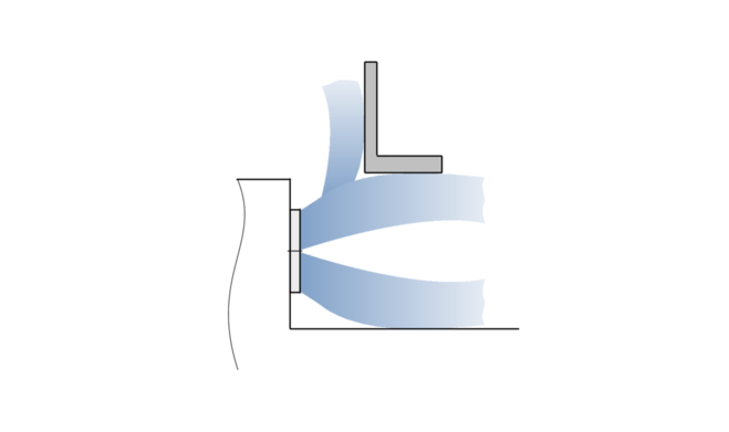 • Swirling air discharge, either parallel to the installation surface or angled, for mixed flow ventilation