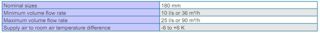 • For supply air to room air temperature differences from –6 to +6 K
