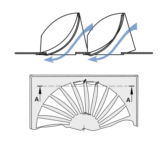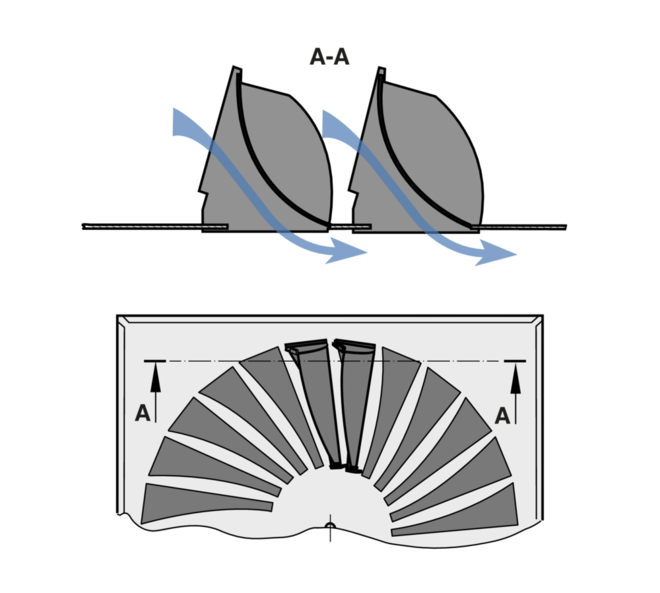 Type TDV ceiling swirl diffusers have adjustable air control blades. The air pattern can be adjusted to meet different local requirements. Horizontal air discharge is one-way, two-way or omni directional. Vertical air discharge is possible but only for heating. The supply air to room air temperature difference may range from –12 to +10 K.