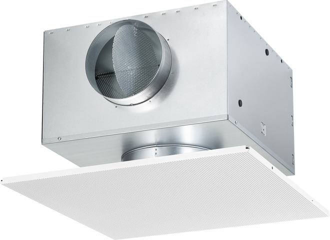 • For a visually uniform ceiling appearance: Installation behind standard perforated metal ceiling panel provided by the customer (free cross-section ≥ 15 %)