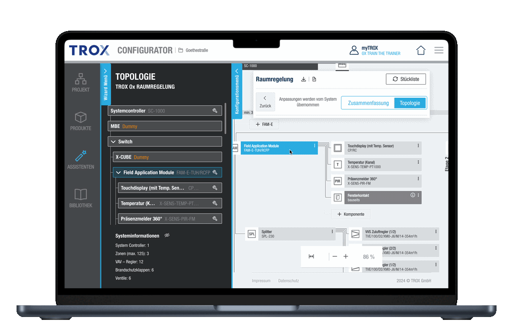 > Einzigartiges Planungstool: Der TROX CONFIGURATOR ermöglicht die Auslegung von Gebäuden mit TROX Ox und unterstützt die Planung effizient und strukturiert.
