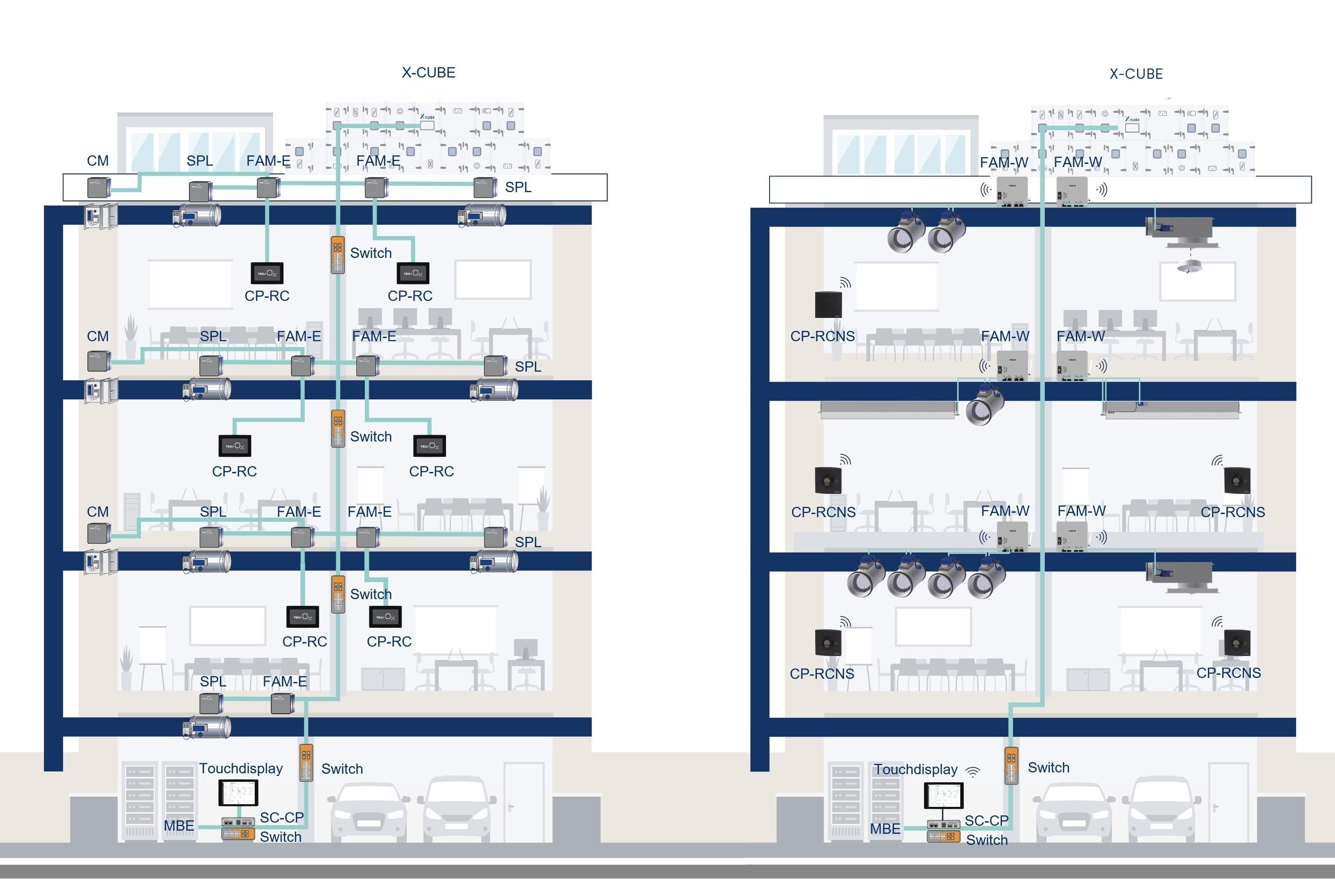 Wired Solution - Ideal For New Buildings | Wireless Solution - Ideal For Existing Buidlings |