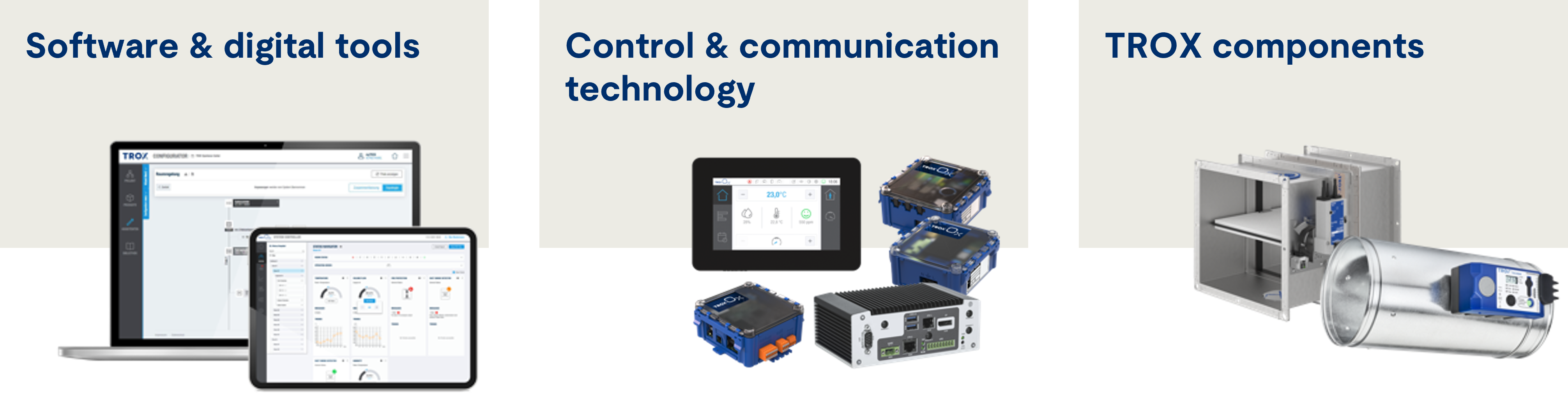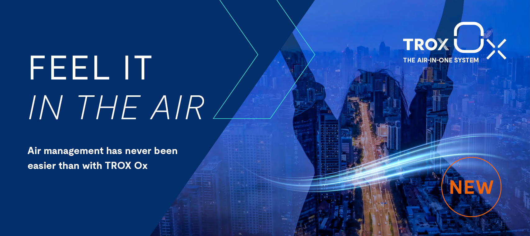 TROX Ox is an innovative system platform for modern air handling technology and intelligent air management in buildings. It connects all air-related components within a unified digital system – from planning and installation through to operation. The platform integrates room control, fire protection, and other air handling systems, and can be seamlessly integrated into existing building and management systems. The result: greater energy efficiency, safety, and comfort for modern buildings.