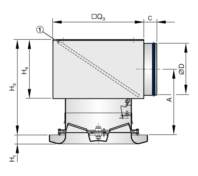 Maximum volume flow rate, with LWA ≅ 50 dB(A) | 170 – 1080 l/s or 612 – 3888 m³/h |