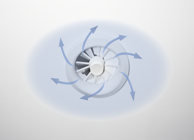 Ceiling swirl diffusers in air conditioning systems create a swirl to supply air to rooms. The resulting airflow induces high levels of room air, thereby rapidly reducing the airflow velocity and the temperature difference between supply air and room air. Ceiling swirl diffusers allow for large volume flow rates. The result is a mixed flow ventilation in comfort zones, with good overall room ventilation, creating only very little turbulence in the occupied zone.