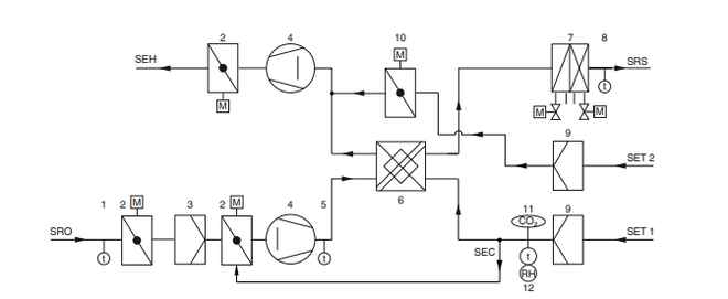 • Kreuzstrom-Wärmerückgewinner (Rückwärmzahl 60 %)