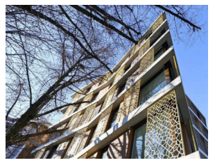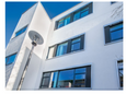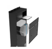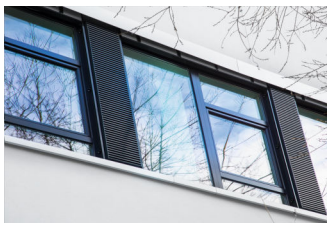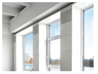 Vertikales dezentrales Lüftungsgerät TROX X-CUBE/ROOMAIR-V-ZAB/SEK-HE mit Zu- und Abluftfunktion und Umschaltmöglichkeit auf Sekundärluftbetrieb (luftqualitätsabhängig), WRG sowie Heiz- und Kühlfunktion zur Montage an bauseitiger Fassadenkonstruktion: