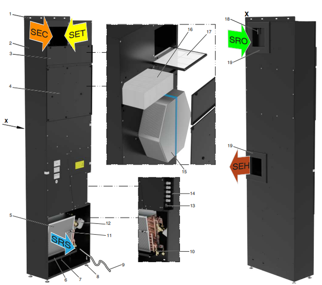 | Serie | vertikales dezentrales Lüftungsgerät X-CUBE/ROOMAIR-V-ZAB/SEK-HE |
